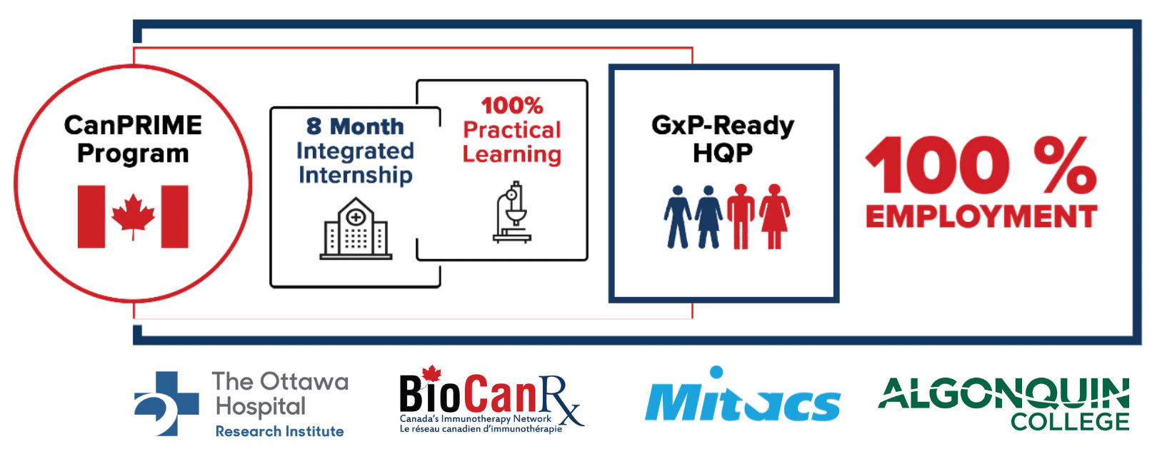 CanPRIME and its national expansion, CanPRIME 2.0, represent a unique and novel approach to provide experienced, job-ready individuals to provision industry, academia and not-for-profits with GMP advanced therapeutic product biomanufacturing know-how.